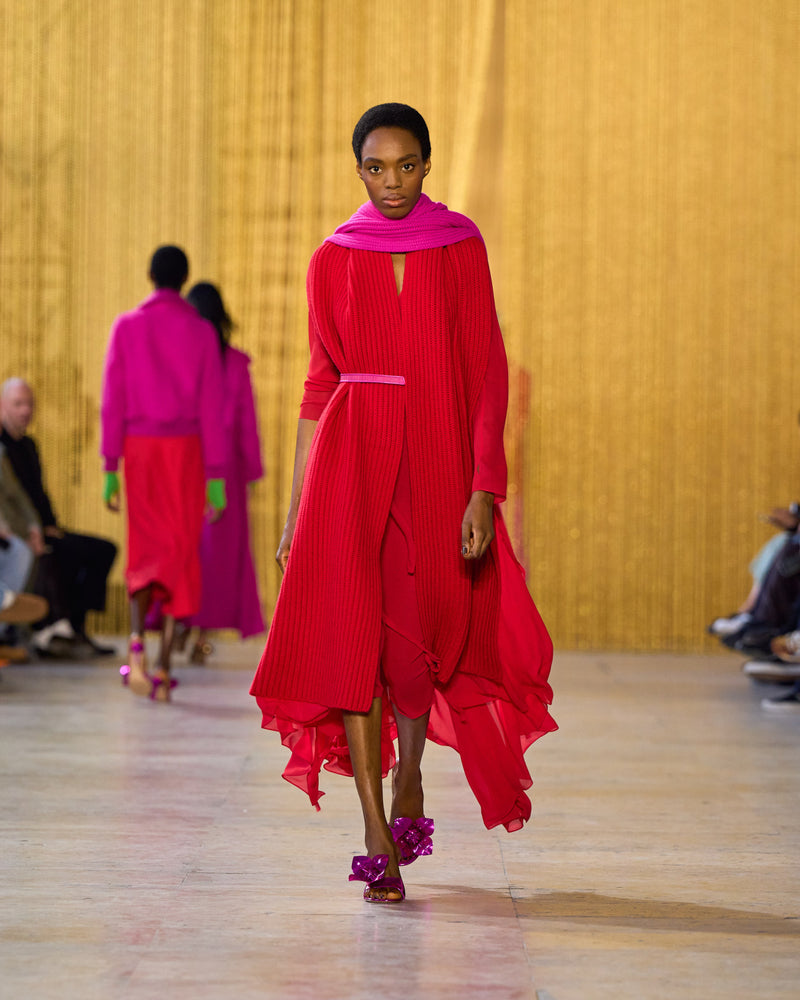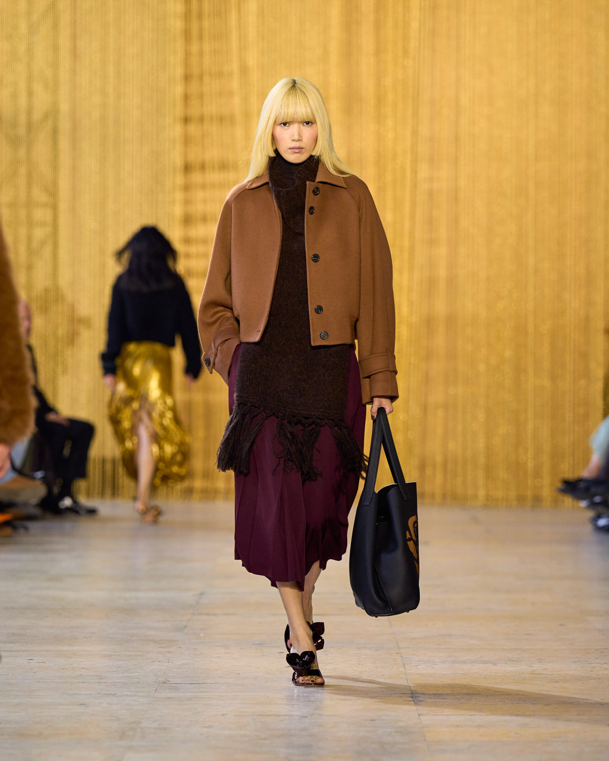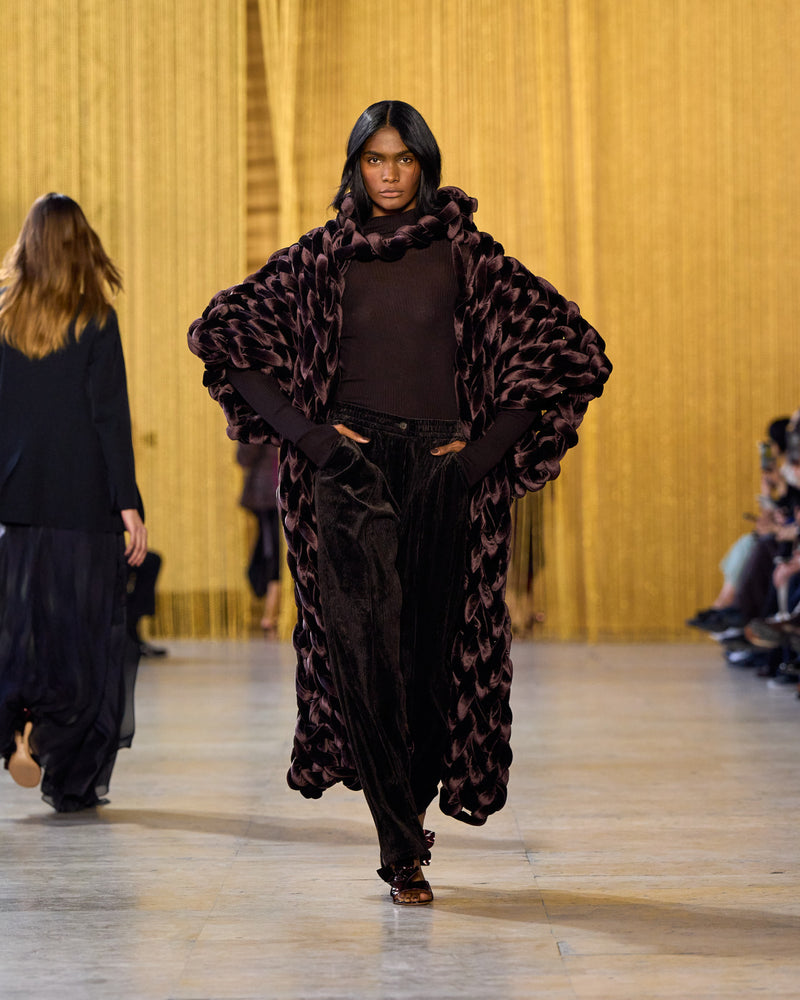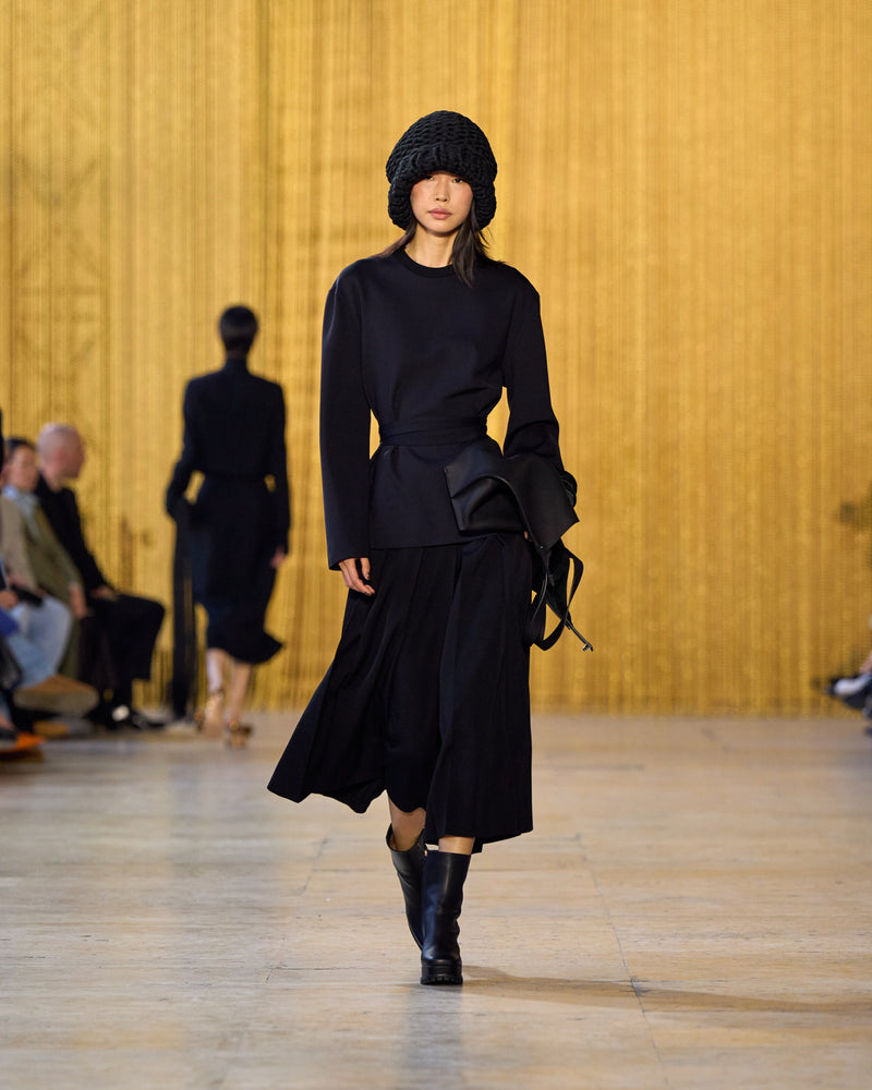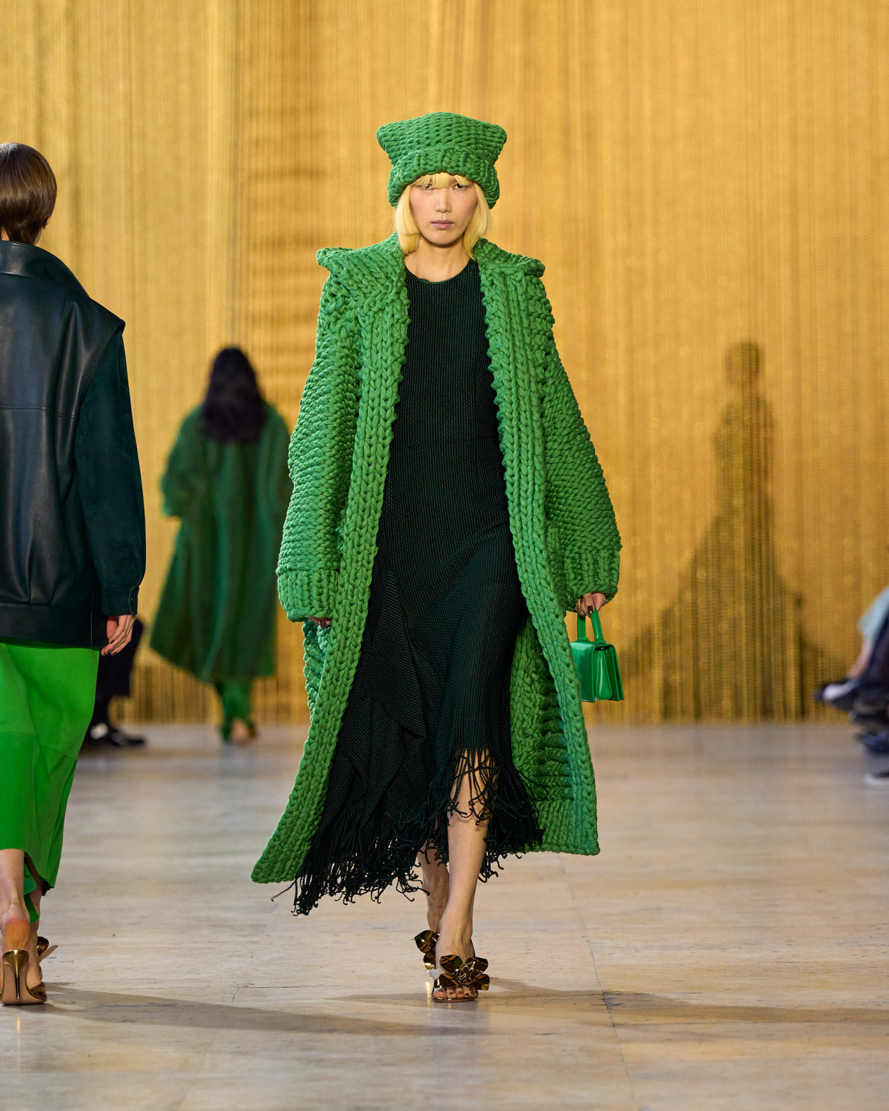 2026年秋冬コレクションでは、クリエイティブ ディレクター アルベルト・クリームラーがテキスタイルアーティストのオルガ・デ・アマラルとコラボレーション。彼女の手は、ウールやリネン、ホースヘアなどの素朴な素材を織り、結び、編み上げ、光を帯びた精緻で存在感のある造形を生み出してきたことで知られています。