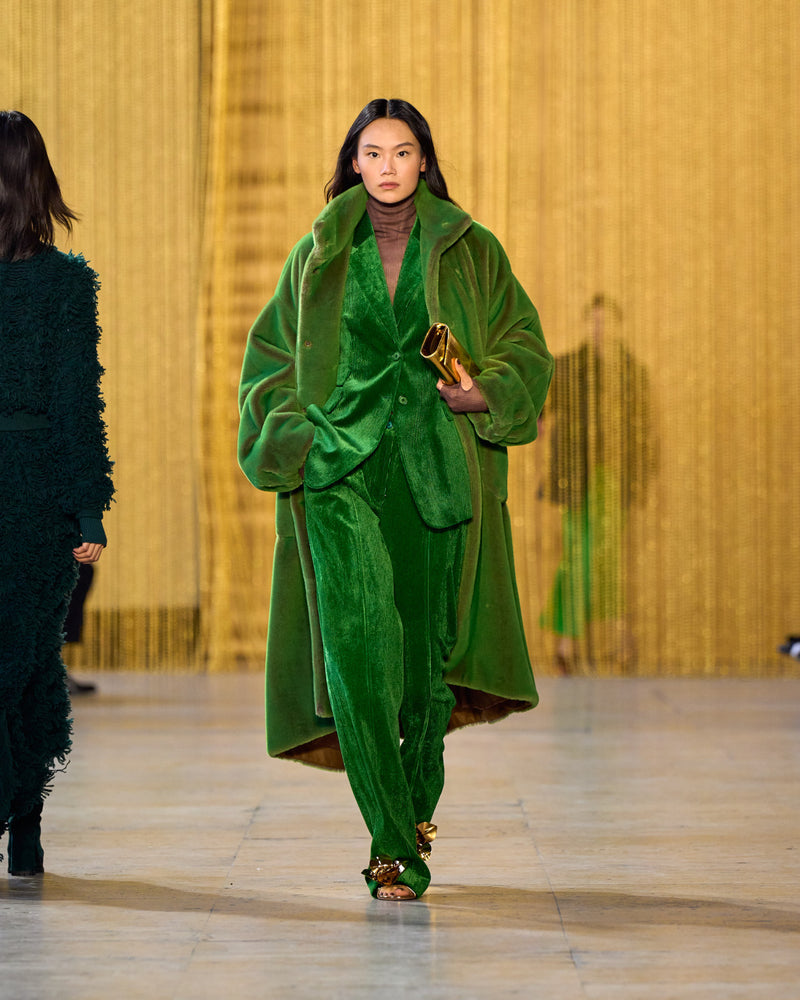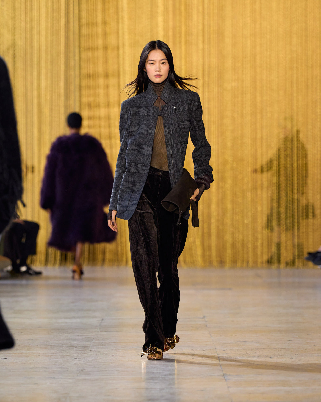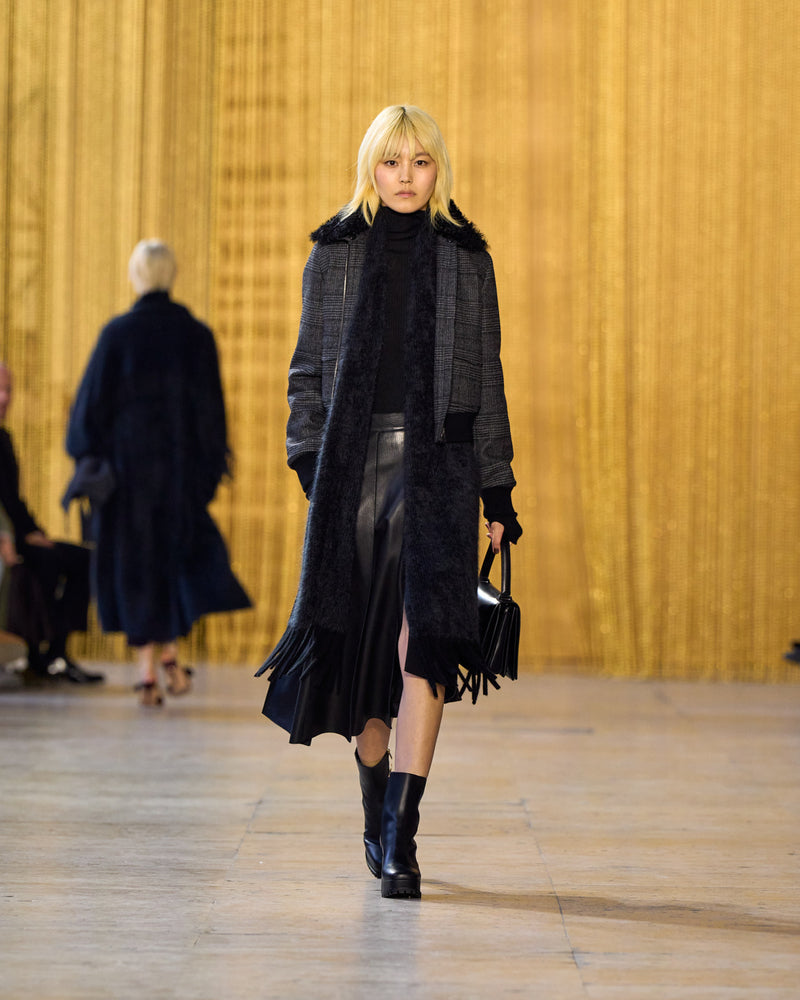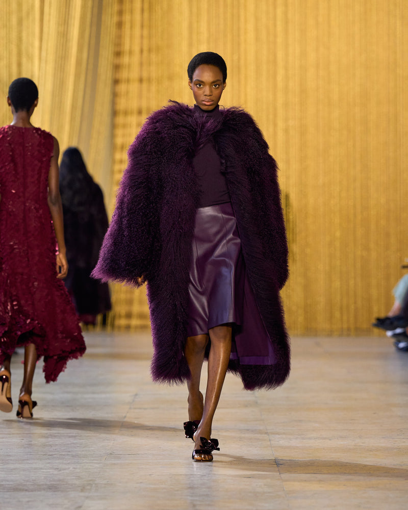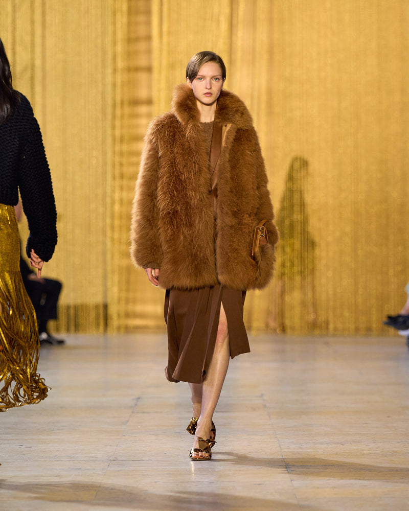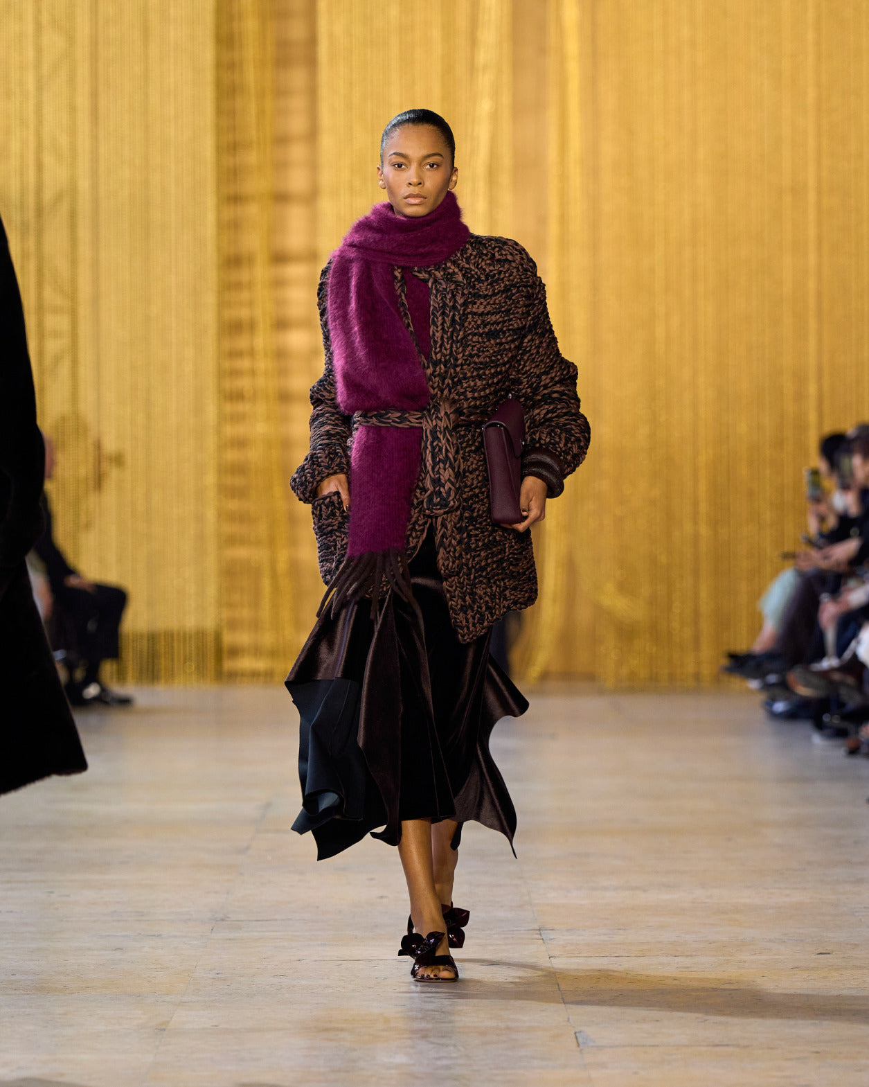 ショーはパリ「パレ・ド・トーキョー」で開催。会場内では、きらめく黄金のカーテンが空間を引き締め、モデルがランウェイにランウェイに足を踏み出すたびに微かに揺れました。