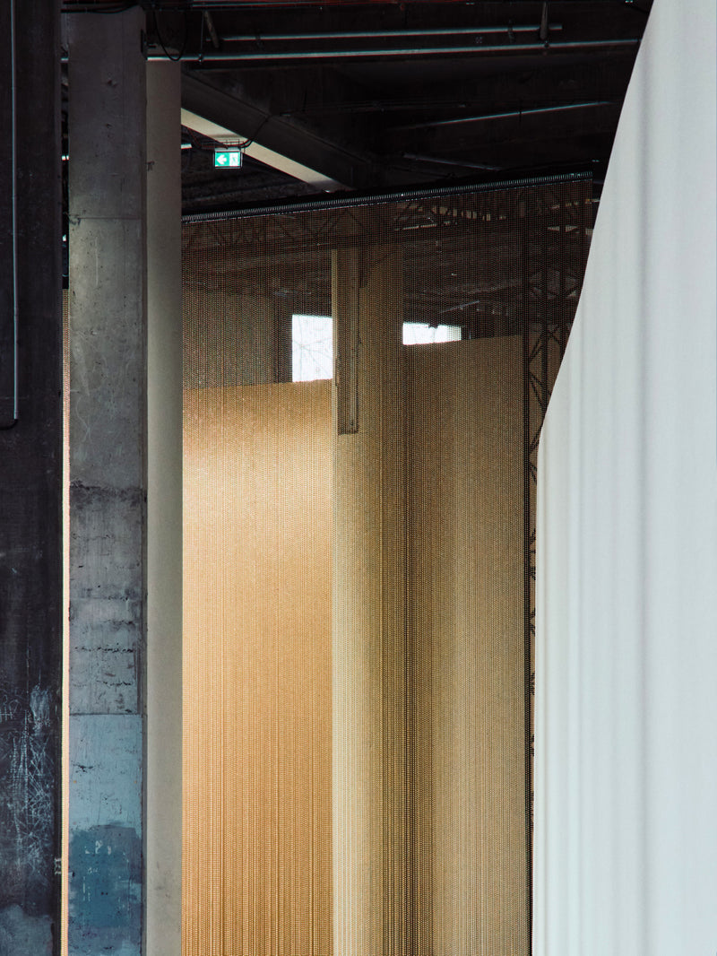 このインスタレーションは、アマラルの作品に見られる吊るされた糸や、アルベルトの最新コレクションのフリンジを映し出すものでした。