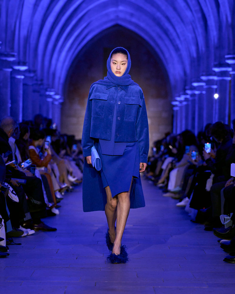 アクリス2025年秋冬コレクションは、ブルーアワー、すなわち「青い時間」を捉えています。昼と夜が瞬間的に交差し、微妙な緊張感の中に浮かび上がるその時間。ここでは、すべてが移り変わります。