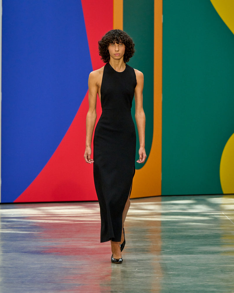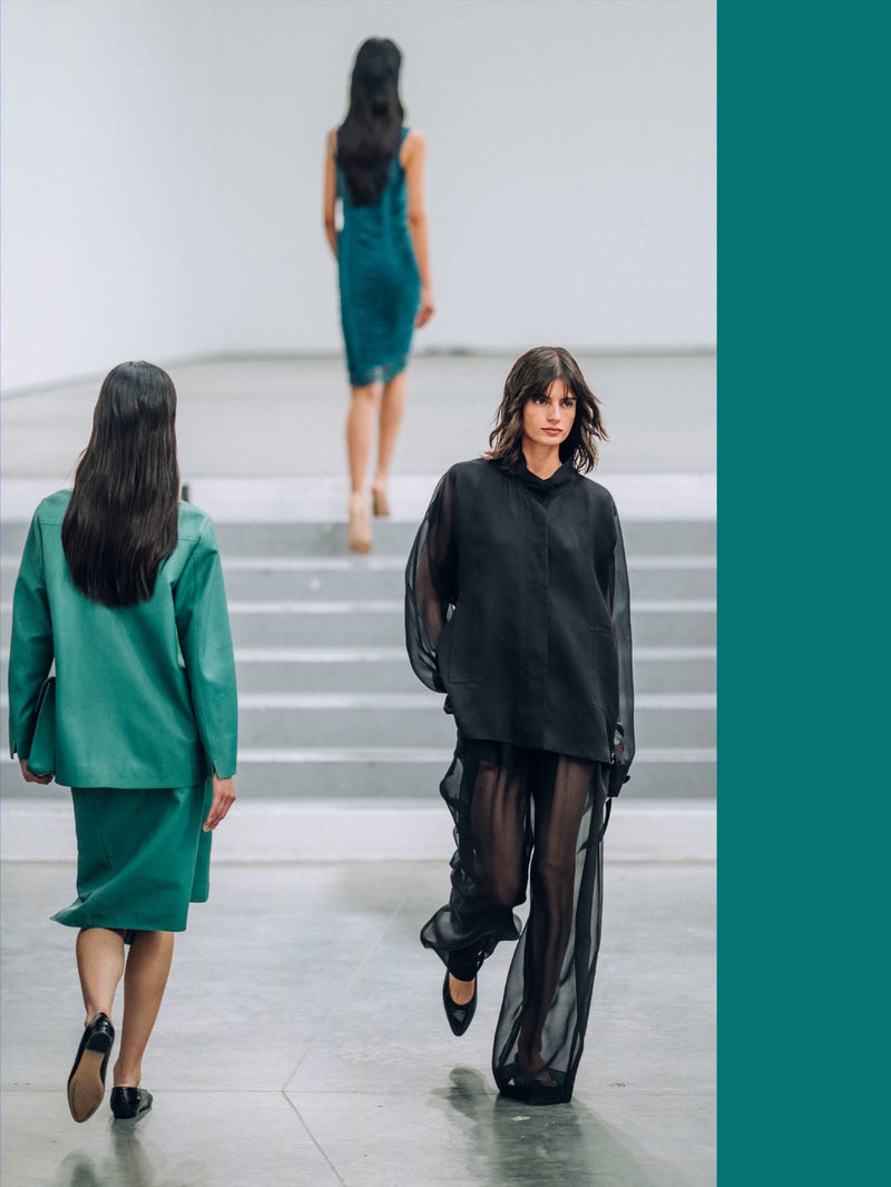 ドレープが美しいフリンジニットは、スミスの曲線的なラインを想起させ、ブランドを象徴するトラぺゾイド刺繍は、より有機的で存在感のある表現へと進化。建築的でありながら、流れるような柔らかさを湛えています。すべてのピースは、クラフツマンシップとスイスデザインならではの精緻さによって生地から丁寧に形作られ、動きに自由と意志をもたらします。