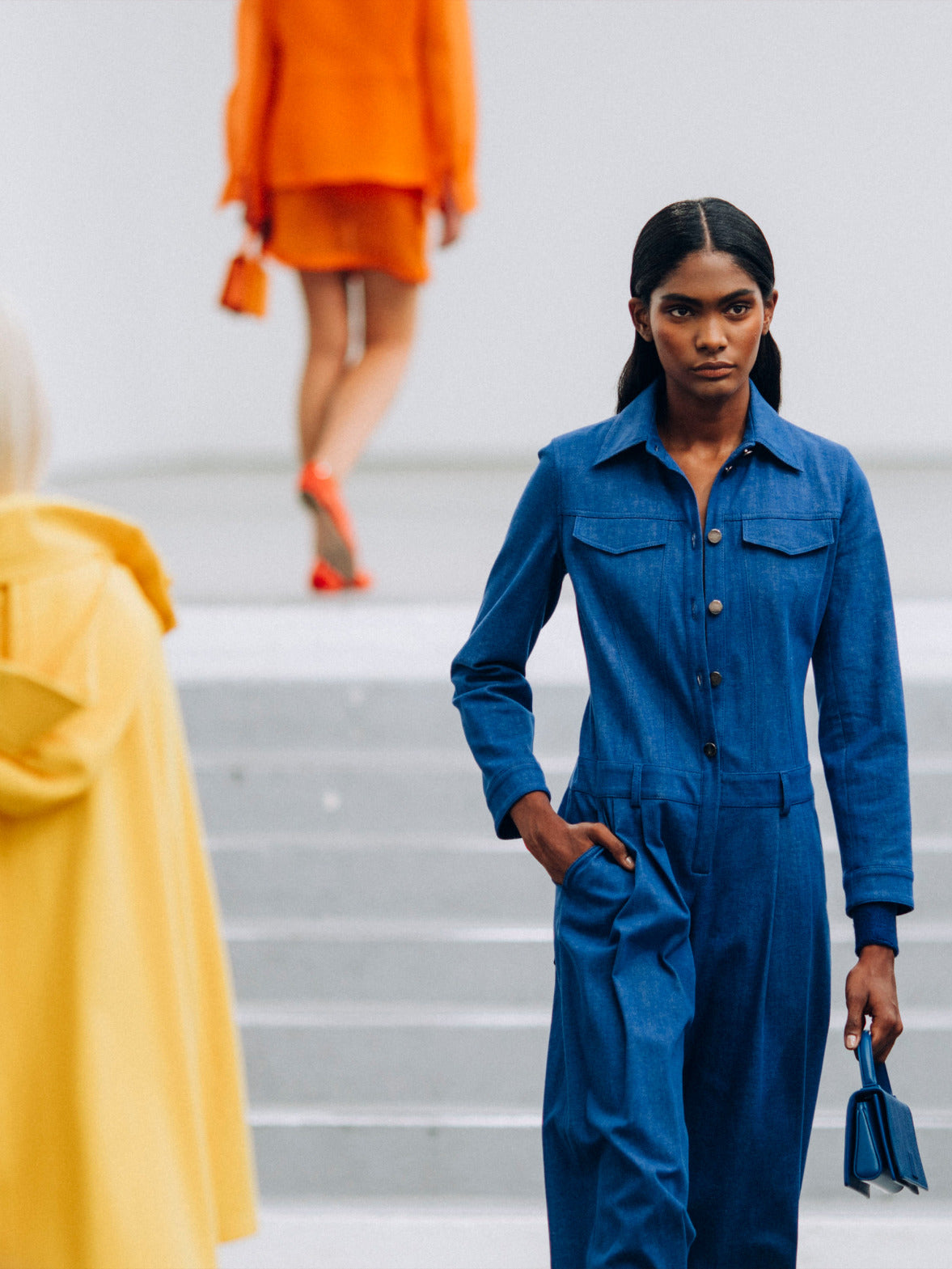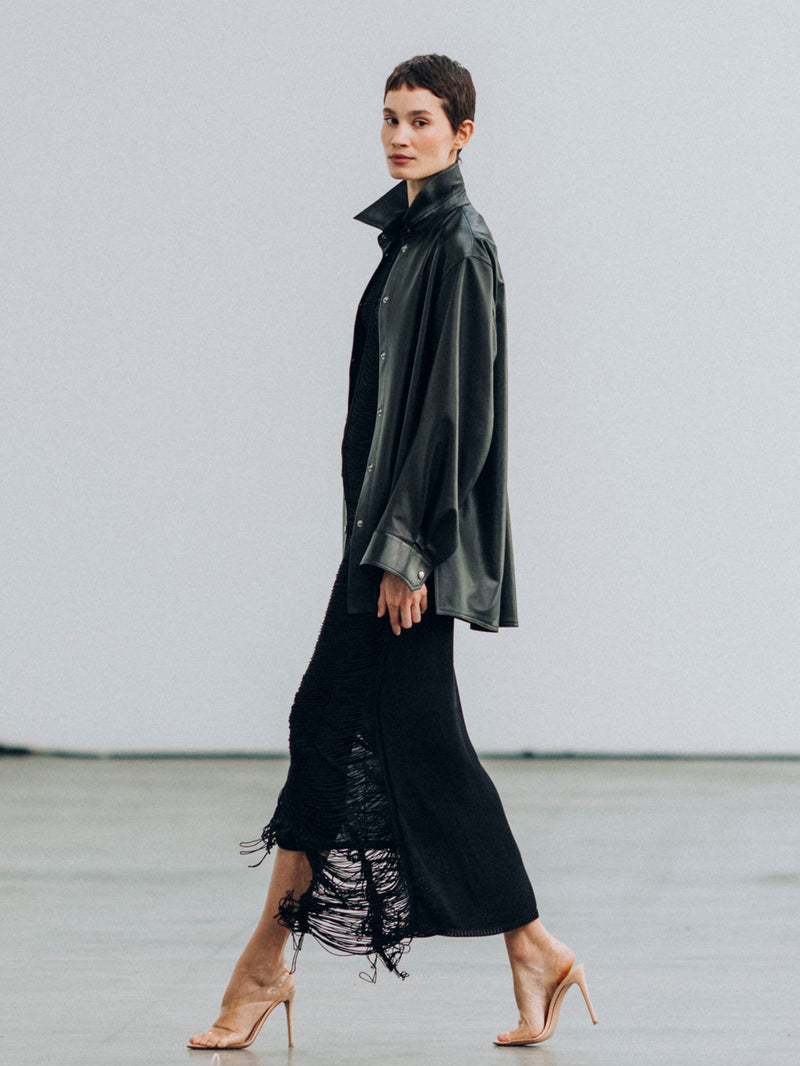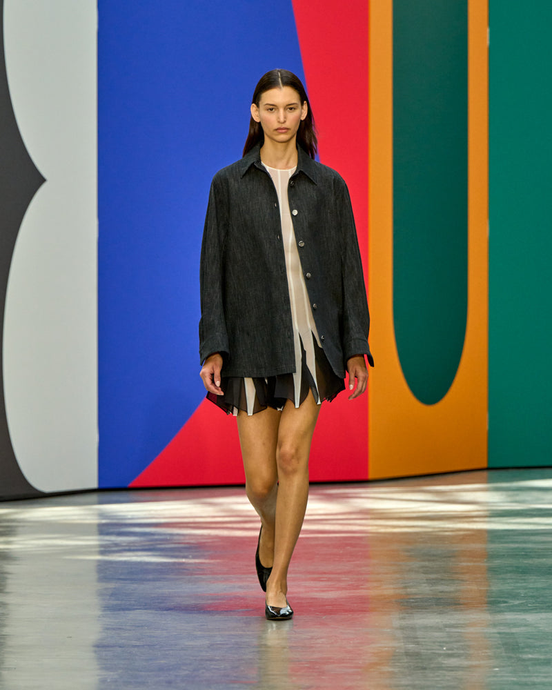 そして際立つのは対照の中に宿る、動的な緊張感。繊細な刺繍のオーバーレイと、ハリのあるデニムやサマーレザーといった実用的なアイテムとの間に生まれるコントラストがスタイルにほどよい緊張感をもたらします。